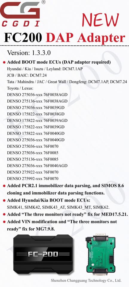 CGDI FC200 DAP Adapter Version: 1.3.3.0