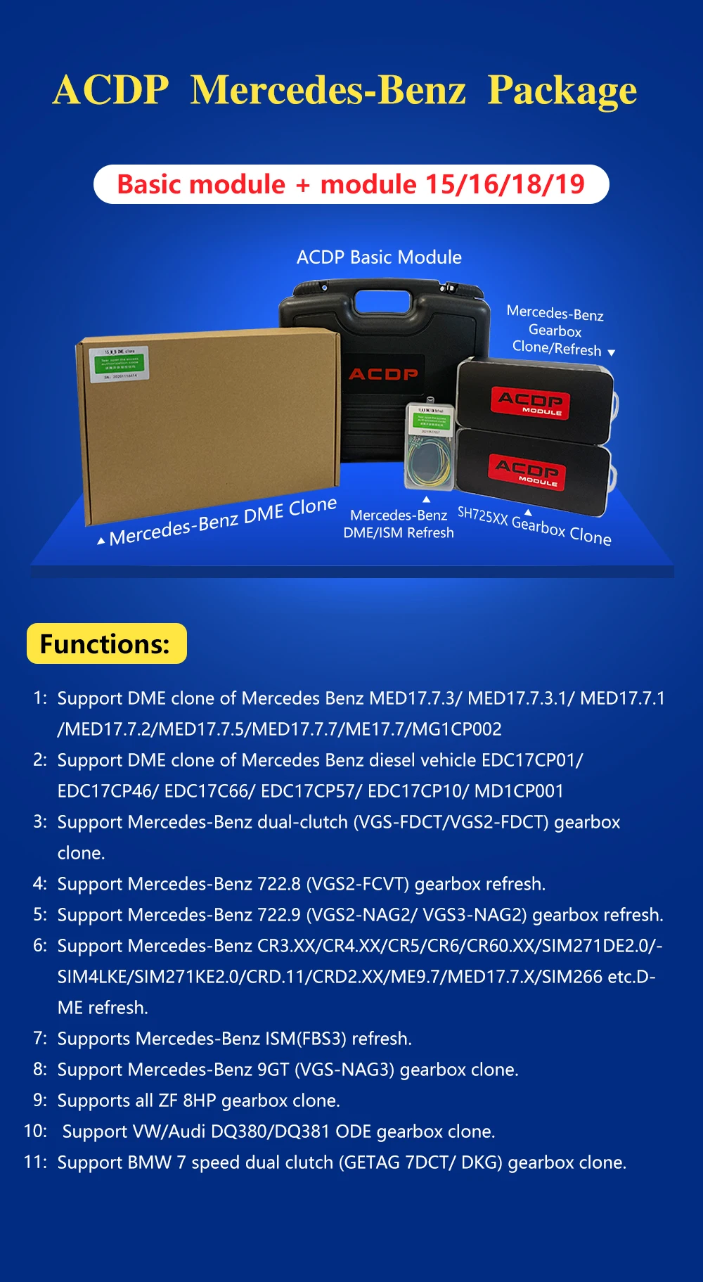 Yanhua mini ACDP for Mercedes-B-enz Package including module 15/16/18/19 DME Clone Work via Bench Mode with License A100
