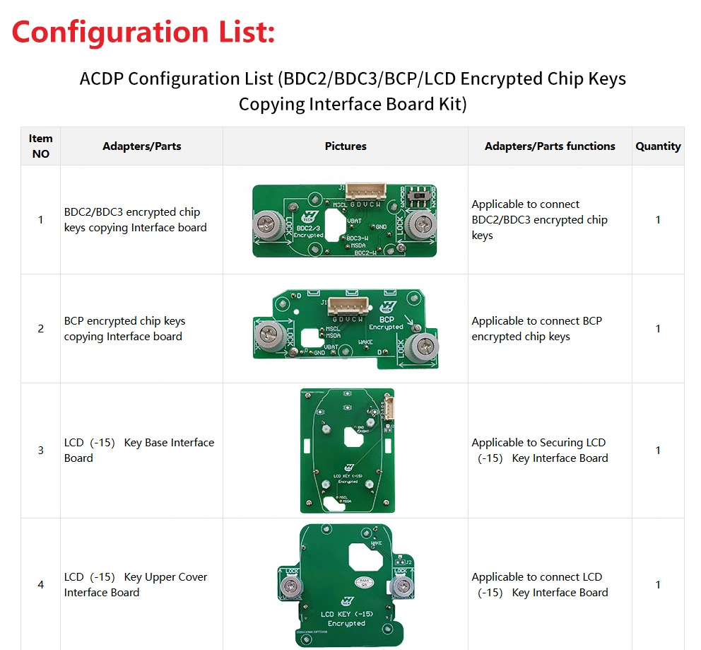 2. Package includes ACDP-2 master basic version, ACDP Module 38, BMW BDC2 bench test platform with BDC2 AKL License, BMW ISN Module 3 and B48 Interface Board and BDC3 BCP Adapter and Yanhua ACDP BMW Encrypted Key Adapters