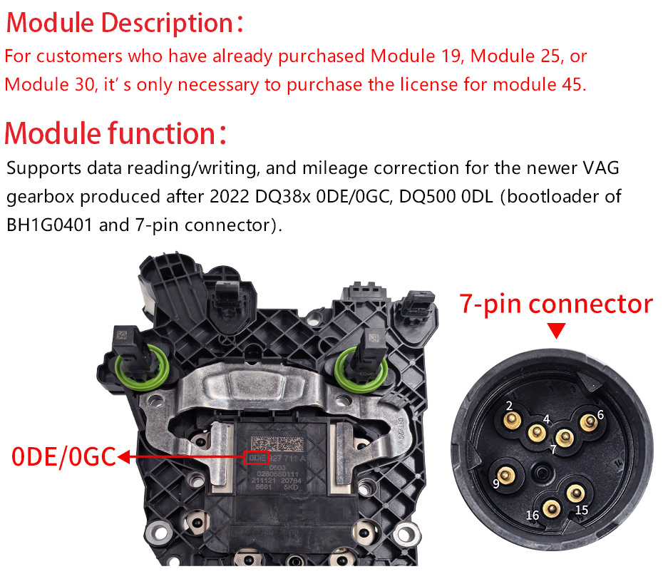 Yanhua ACDP Module45 For VAG DQ38X/DQ500 GEN2 TCU read/write data and mileage correction with A60B license