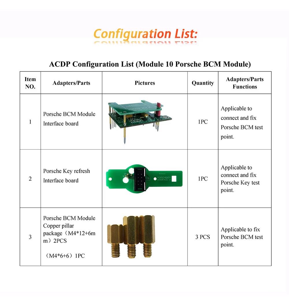 ACDP 2 Porsche BCM Package Include: