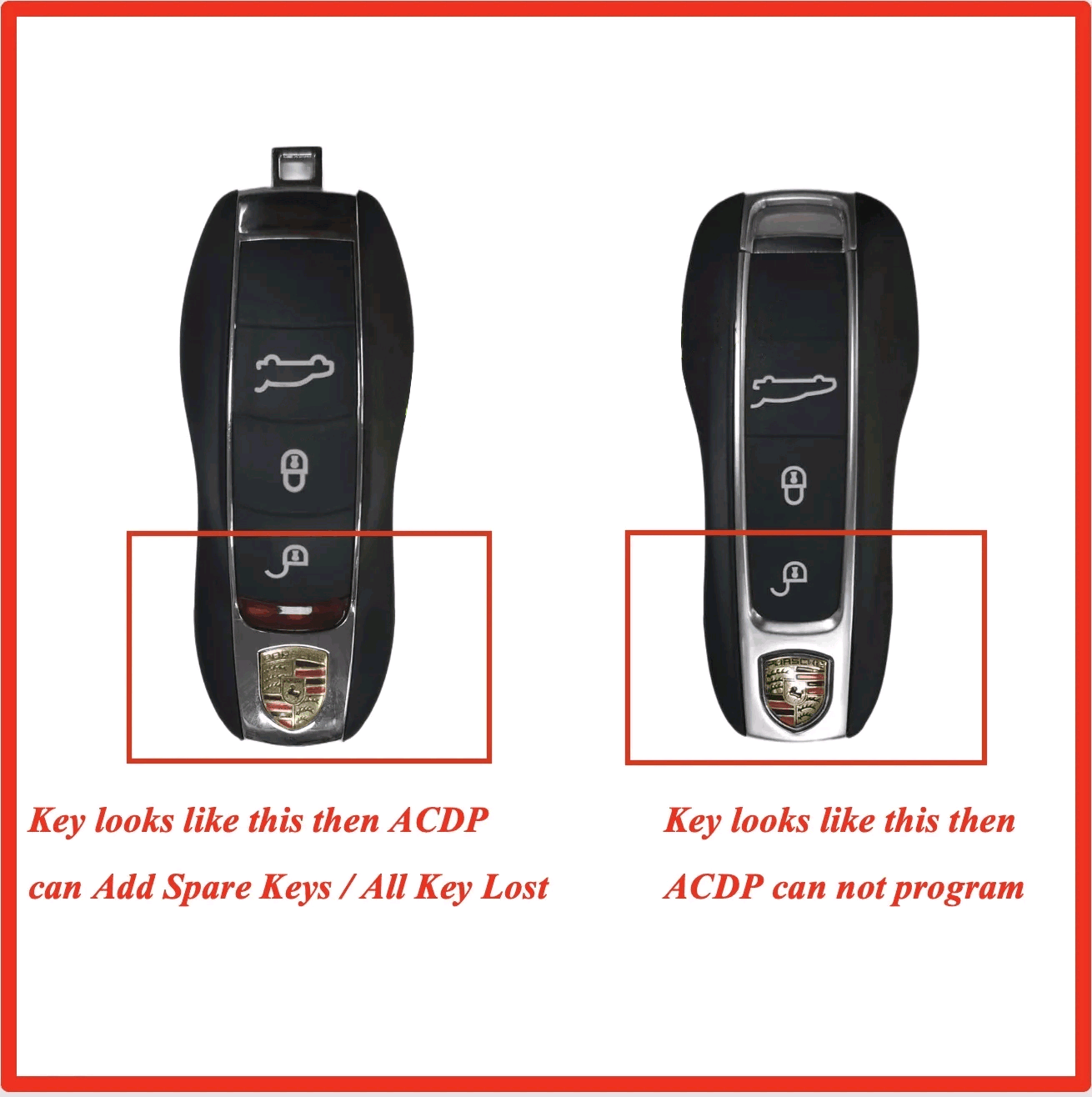 If you want to know whether the currenct key remote is working, whether the key can start the vehicle, you can use Porsche BCM Key Tester (Buy Extra)to test