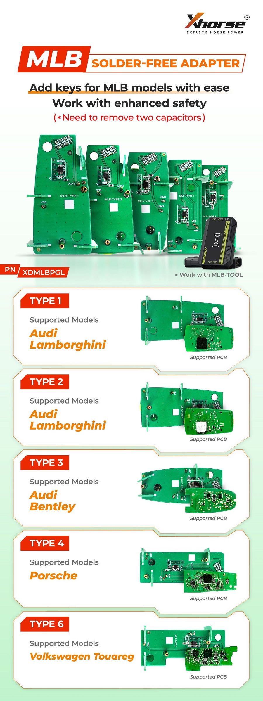 Xhorse XDMLBPGL Solder Free Adapter work with Xhorse MLB Tool for VW Audi Key Adapter work with VVDI2, VVDI Key Tool Plus