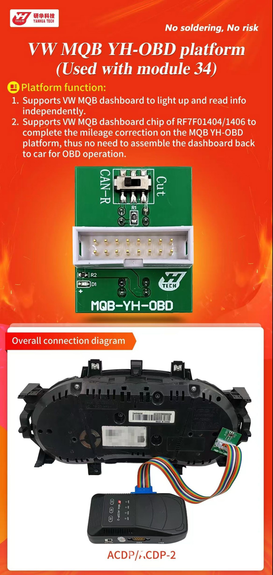 Home > Yanhua ACDP Adapters&License&Parts > Yanhua VW MQB YH-OBD Platform Working With ACDP Module 34